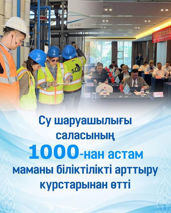 Су шаруашылығы саласының 1000-нан астам маманы Қазақстанда және шетелде біліктілігін арттырды. Олардың ішінде 125 маман Қытай кәсіпорындарында оқудан өтті. ҚХР-мен бірлескен бағдарламаны жалғастыру туралы келісімге қол жеткізілді.