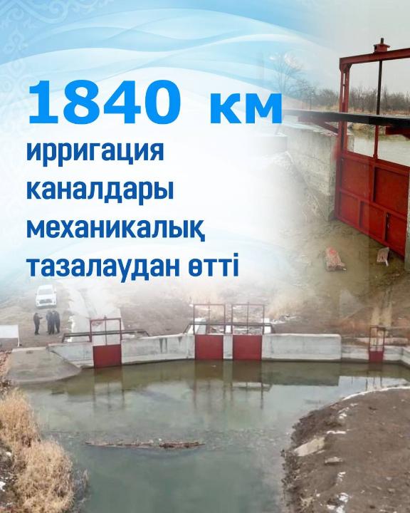 Егіс алқаптарына су беруді жақсарту және экологиялық мақсаттағы су жіберудің тиімділігін арттыру мақсатында 1840 км ирригация каналдары механикалық тазалаудан өтті.