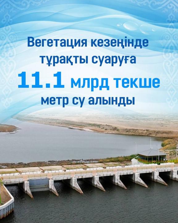 Вегетация кезеңінде тұрақты суаруға 11,1 млрд текше метр су алынды. Ауыл шаруашылығы құрылымында бұл көлем саланың жалпы ішкі өнімінің 30 пайызына дейінгі үлесін қамтамасыз етті.