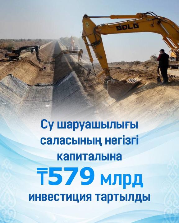 Су шаруашылығы саласының негізгі капиталына 579 млрд теңге инвестиция тартылды. Келесі жылы Ислам даму банкімен су қоймалары мен каналдарды салу және реконструкциялау бойынша бірлескен жобаның алғашқы кезеңі іске асырыла бастайды.