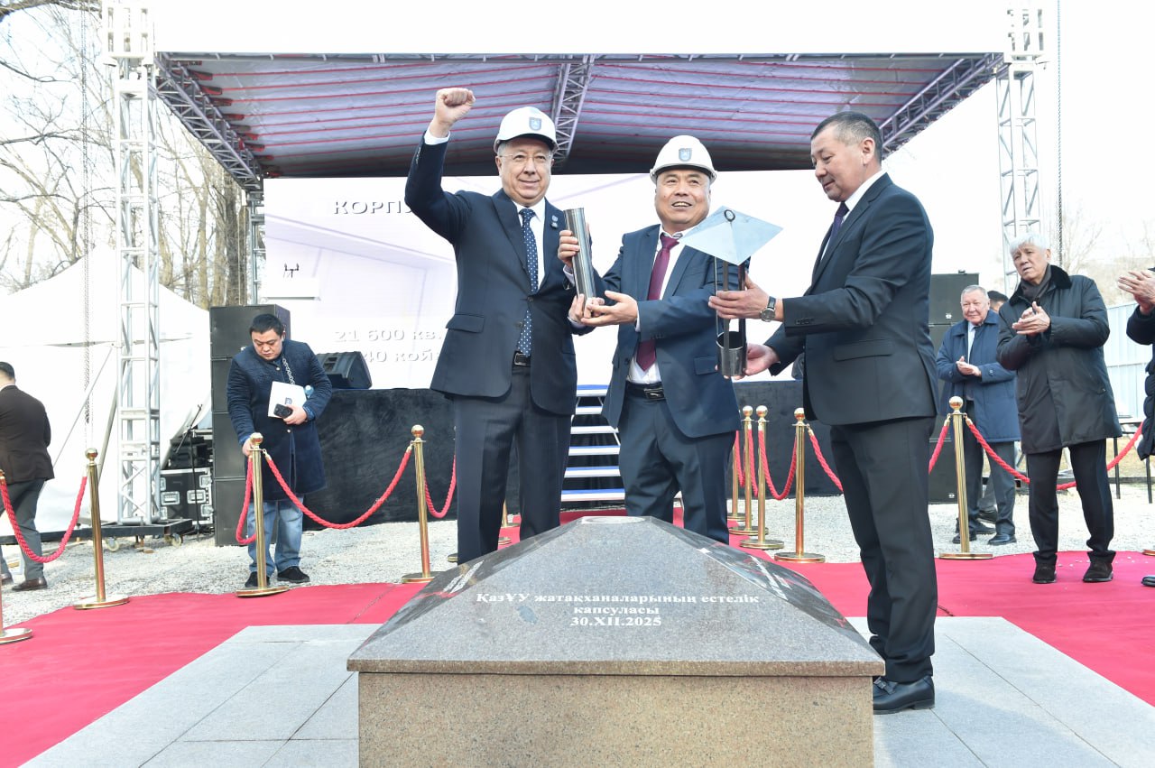 Әл-Фараби атындағы Қазақ ұлттық университеті қалашығында студенттерге арналған 5000 орындық жаңа жатақханалар құрылысының капсуласын салу рәсімі өтті, деп хабарлайды DKNews.kz.