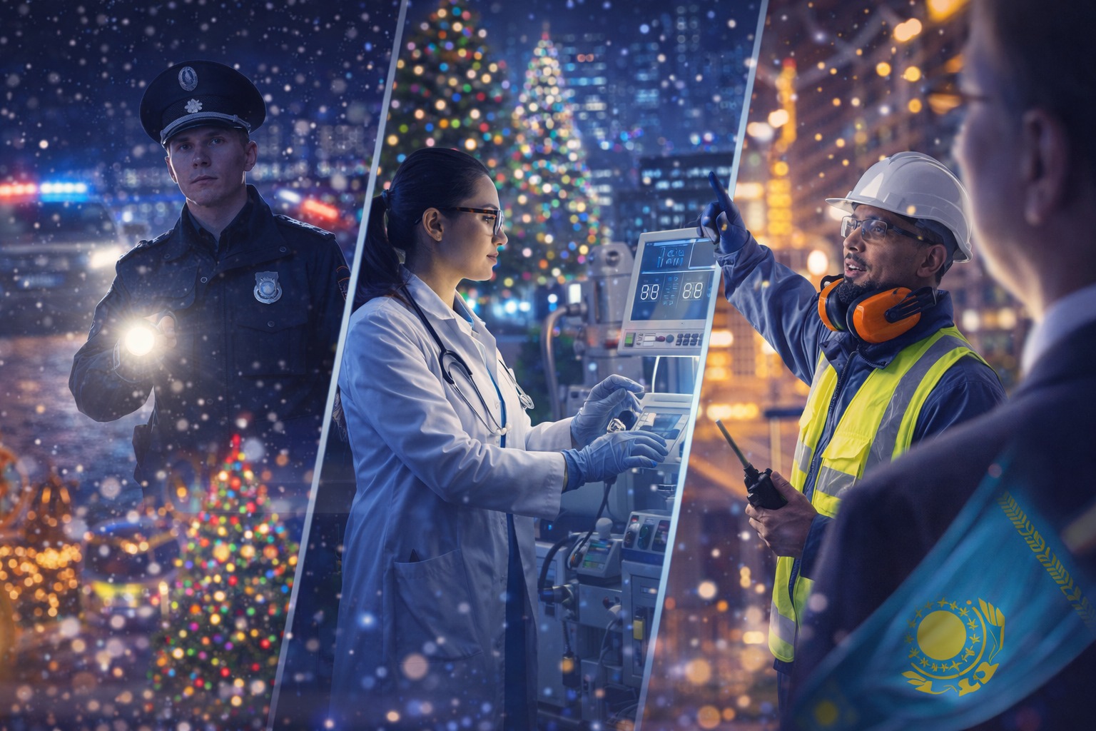 Жаңа жыл түні жұмыс орнында қалғандар тек тәртіп көрсетіп отырған жоқ - олар елдің қалыпты өмірін сақтап тұр.