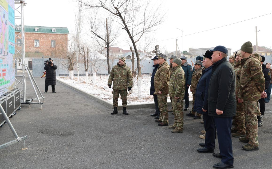 Облыстық аумақтық қорғаныс бригадасында министр командирдің ағымдағы жағдай туралы баяндамасын тыңдап, 99215 әскери бөлімінің штаб жұмысына, сондай-ақ жеке құрамның орналасу және тамақтану жағдайларына тексеру жүргізді.