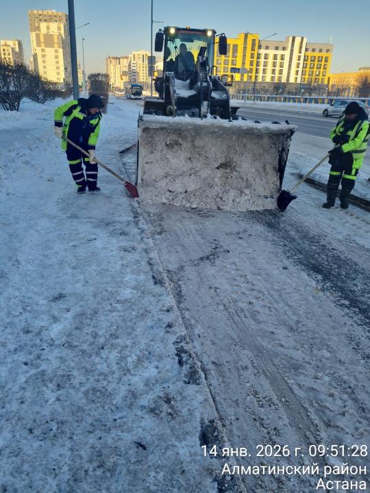 14 қаңтар күні таңғы уақыттан бастап қар күреу жұмысына 3 мыңнан астам жол жұмысшысы мен 1 900-ге жуық арнайы техника жұмылдырылды.