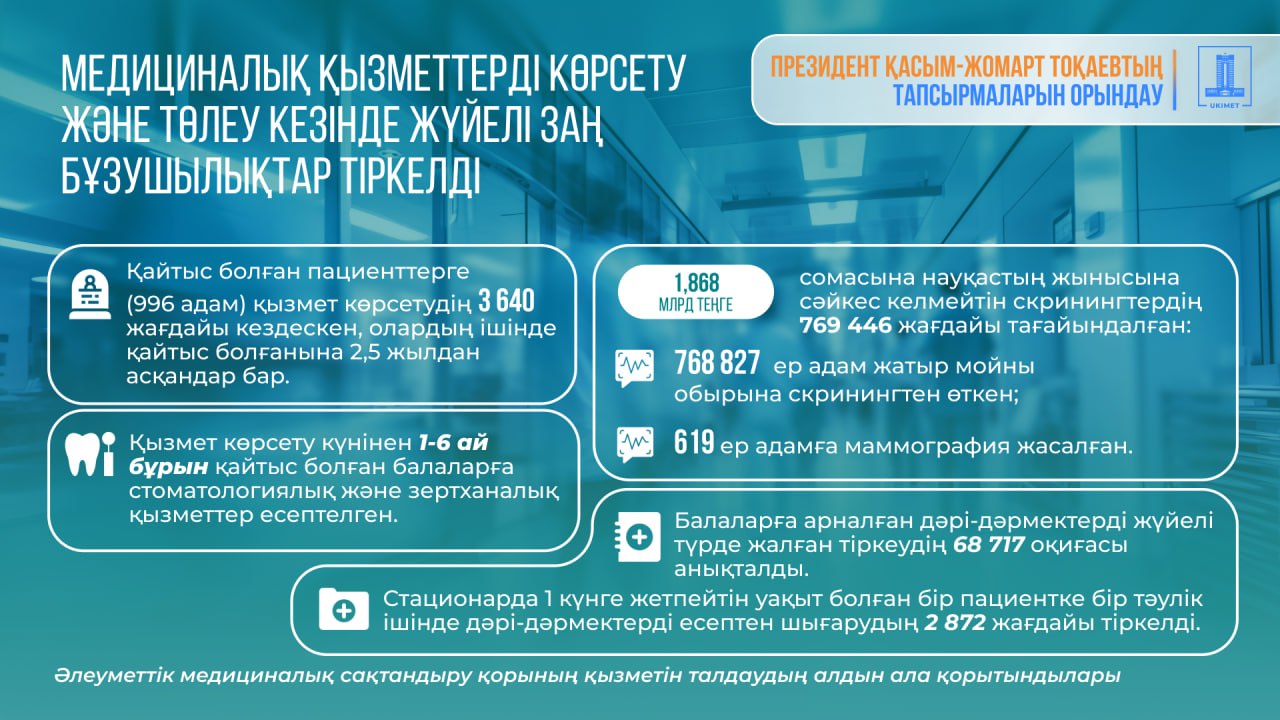 Қайтыс болған пациенттерге қатысты деректер де ерекше назар аудартты. Барлығы 996 қайтыс болған адамға медициналық қызмет көрсетудің 3 640 жағдайы анықталған. Соның ішінде 2023 жылы қайтыс болған азаматты 2025 жылы қабылдауға жазу фактісі де бар.