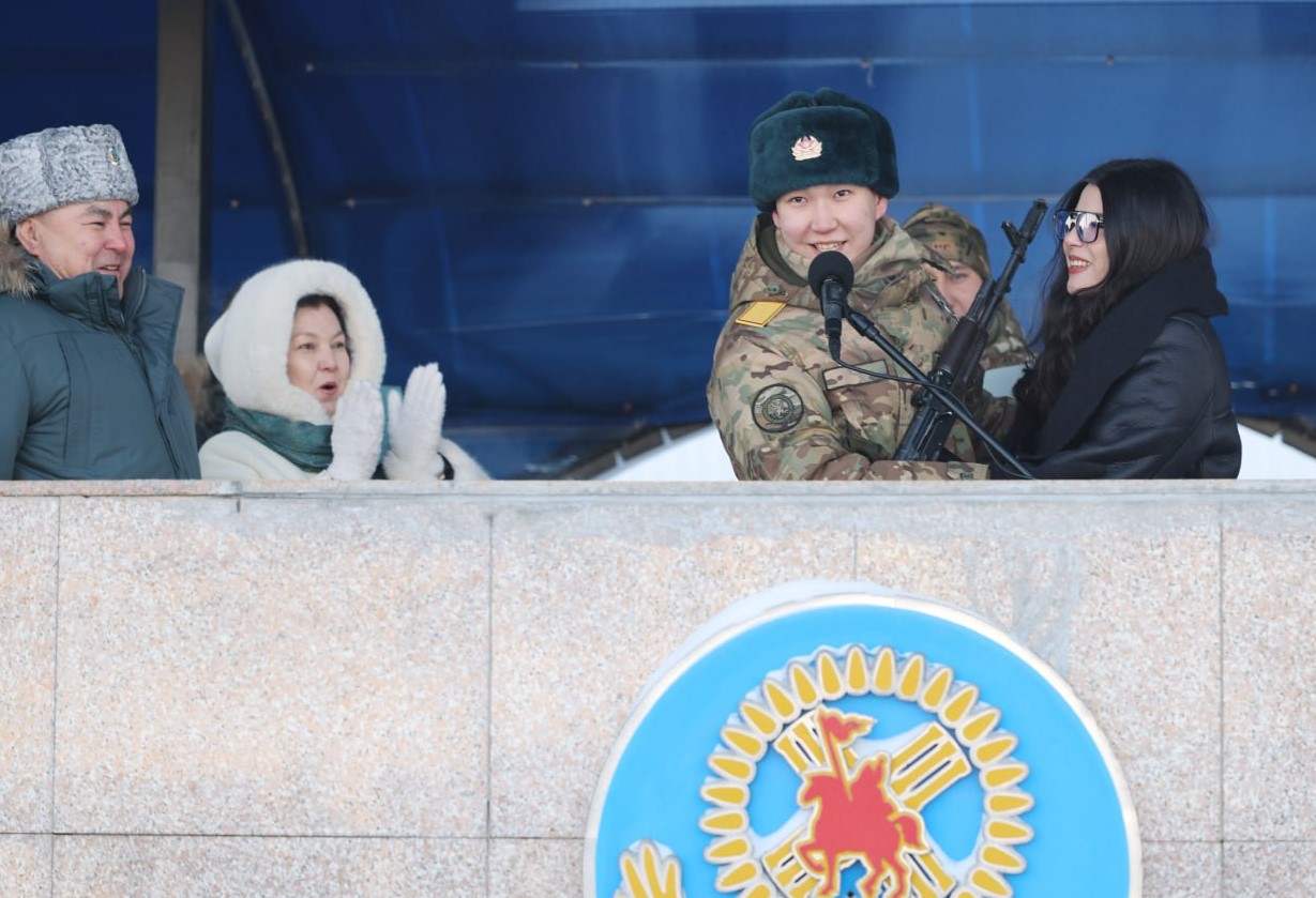 Айта кетейік, рәсім соңында жеке құрам сап түзеп, әскери техникалардың қатысуымен шеру өтті. Бірақ бұл күннің ең есте қалар көрінісі – жас сарбаздың ғашығына жасаған ұсынысы болды. Осылайша, жауынгерлер ант берген алаңда жас отбасының да іргетасы қаланды.