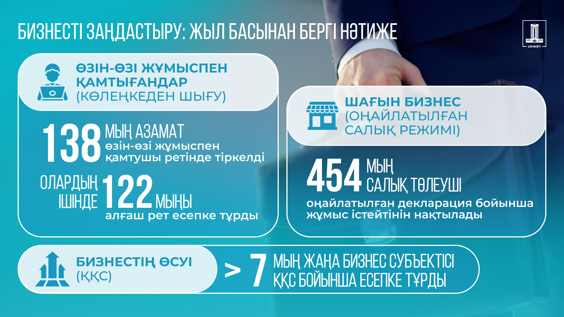 - 138 мың адам өзін-өзі жұмыспен қамтыған ретінде тіркелді, оның 122 мыңы бұрын есепте болмаған