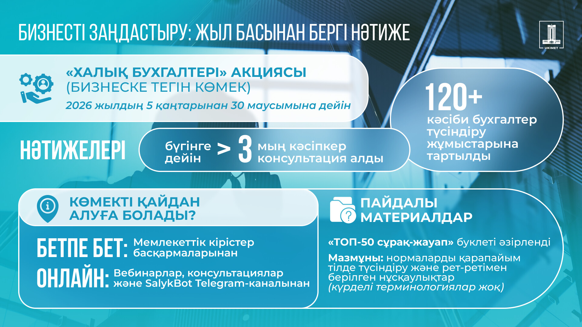 «Әділ, ыңғайлы әрі түсінікті. Салық төлеу үдерісі дәл осындай болуы керек. Салық қызметкерлері бизнестің серіктестері мен кеңесшілеріне айналуы тиіс. Ал жауапкершілік тек кірісті әдейі жасырғандарға қолданылады. Сондықтан 2026 жыл шағын және микро бизнес үшін өтпелі кезең болады – қателіктер үшін өсімпұл мен айыппұл салынбайды», – деді Премьер-министр.