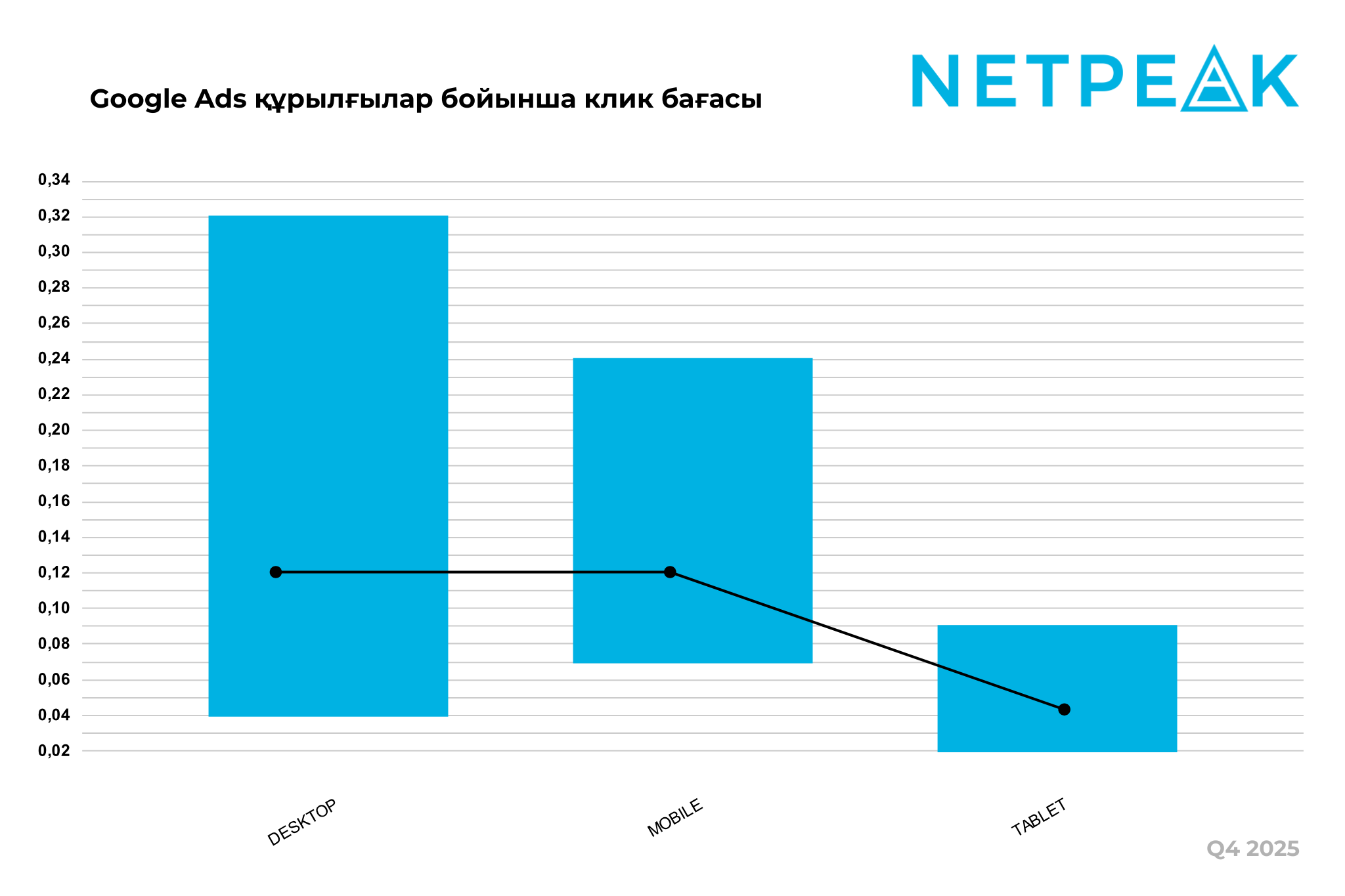 - мобильді құрылғыларда медиана бірнеше тоқсан бойы $0,15 болып келген, IV тоқсанда $0,12-ге түсті, жоғарғы квартиль $0,31-ден $0,24-ке қысқарды