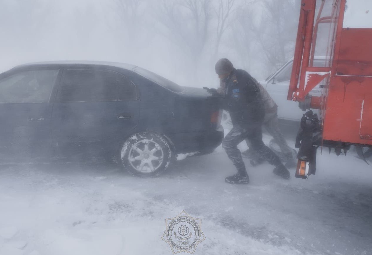 Қатты жел мен қалың қар жол қозғалысын күрделендіріп, бірнеше көлік қар құрсауында қалып қойған. Дәл осындай сәтте уақытпен санаспай әрекет ететін ТЖМ қызметкерлері шұғыл түрде авариялық-құтқару жұмыстарына кірісті.