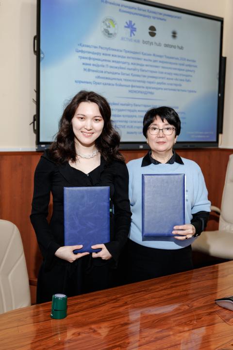 Цифрлық трансформацияны жеделдету және өңірлік IT-экожүйені күшейту мақсатында М.Өтемісов атындағы Батыс Қазақстан университеті мен Astana Hub-тың Орал қаласындағы филиалы арасында ынтымақтастық туралы меморандумға қол қойылды.
