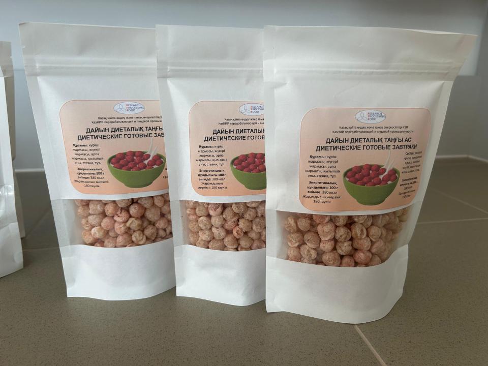 Осы мәселеге жауап ретінде Қазақ тағамдық және қайта өңдеу өнеркәсібі ғылыми-зерттеу институтының мамандары диеталық әрі профилактикалық бағыттағы жаңа құрғақ таңғы ас технологиясын әзірлеуді аяқтап жатыр.
