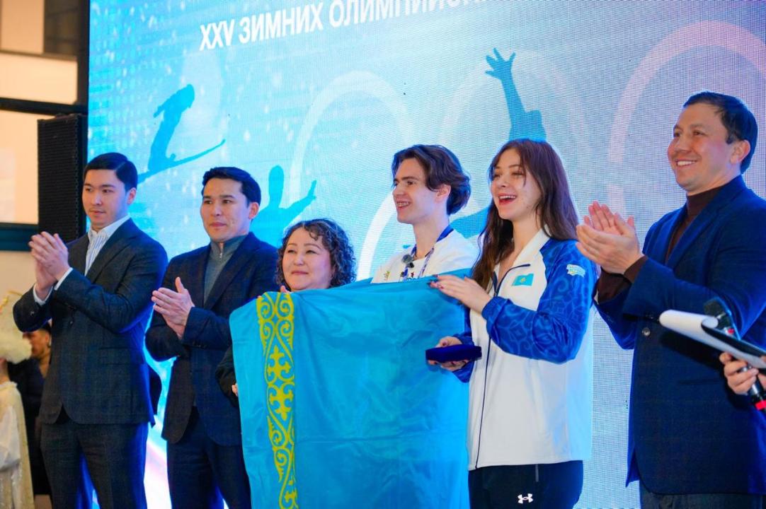 Олимпиада жүлдегерлерін Астана әкімінің орынбасары Ерік Мейрхан қарсы алды. Туризм және спорт министрі Ербол Мырзабосынов құттықтау айтты. Қазақстан конькимен мәнерлеп сырғанау одағының президенті Бауыржан Ералы қатысқан. Қазақстан Ұлттық олимпиада комитетінің президенті Геннадий Головкин арнайы сөз сөйледі.