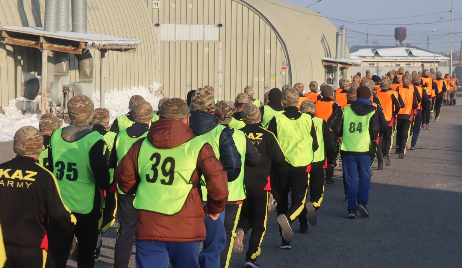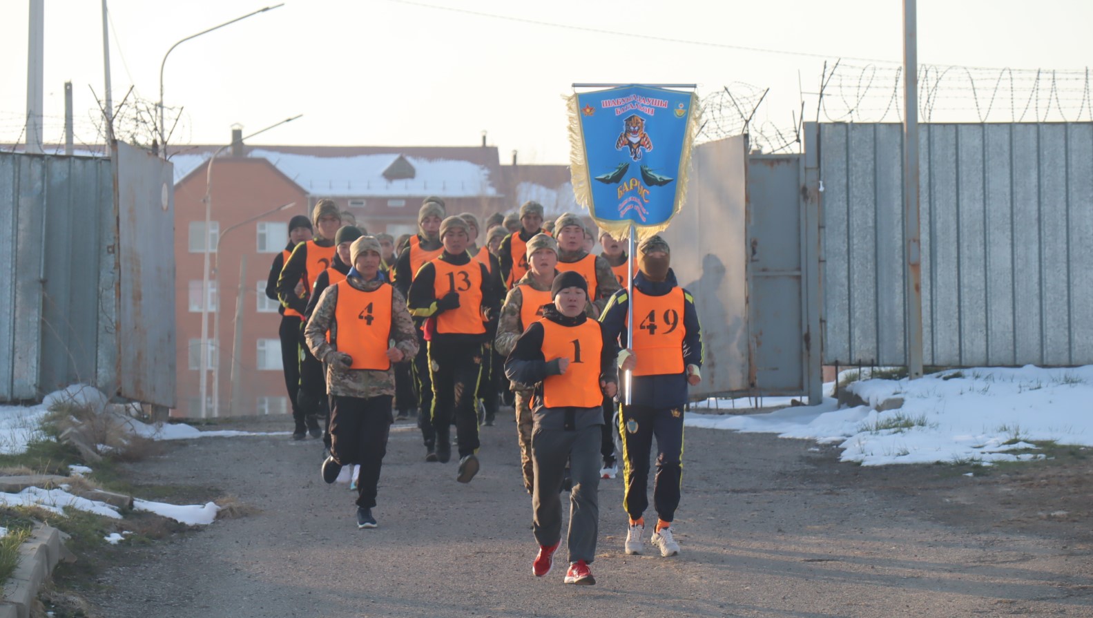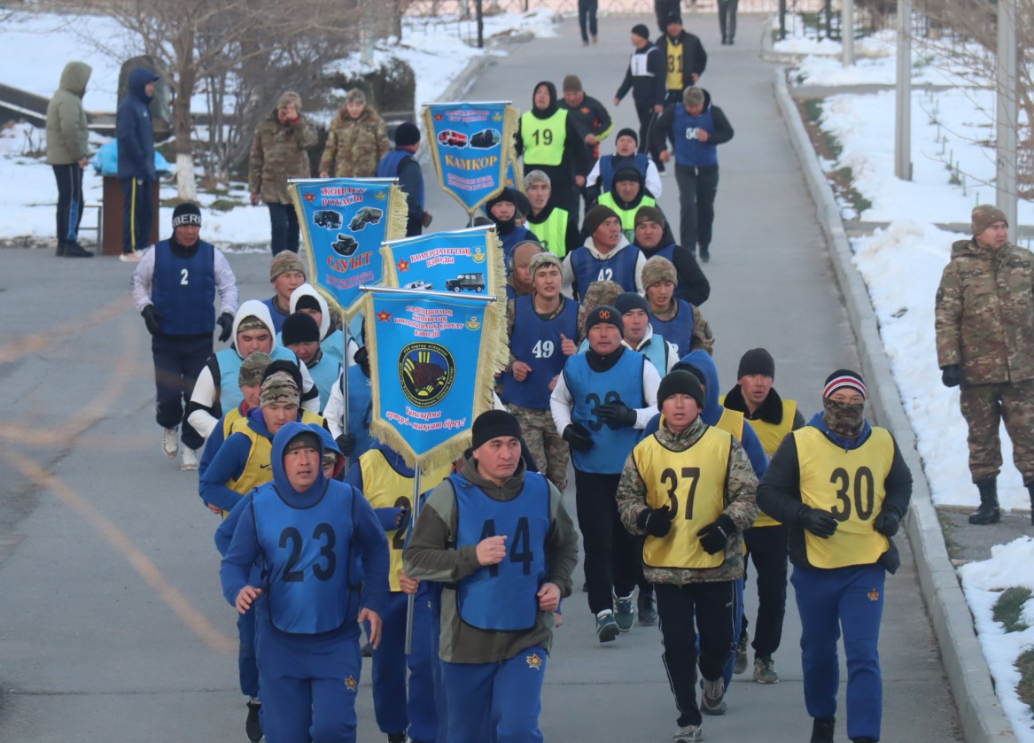 Командирлердің ырғақты ұрандарымен сарбаздар бес шақырымдық қашықтықты бағындырды. Ең қызығы — жүгіруге тек сарбаздар ғана емес, бригаданың басшылығы да қатысты.