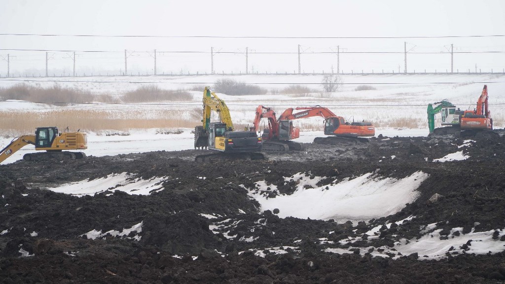 Астрахан ауданындағы Ескі Қалқұтан ауылы маңында Қалқұтан өзенінің арнасын түзету және тереңдету жұмыстары жүргізілуде.