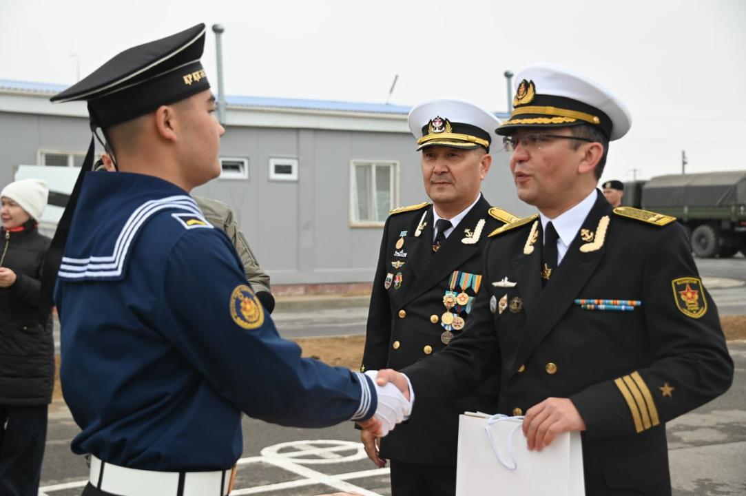 Түстен кейін тур теңіз жаяу әскерлерінде жалғасты. Мұнда мерзімді қызметін аяқтаған әскери қызметшілердің Жауынгерлік тумен қоштасу рәсімі өтті.