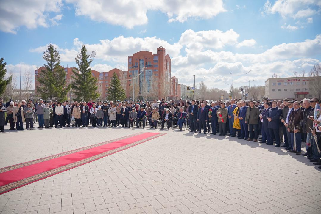 Іс-шара соңында қатысушылар Қаныш Сәтбаевтың ескерткішіне гүл шоқтарын қойды.