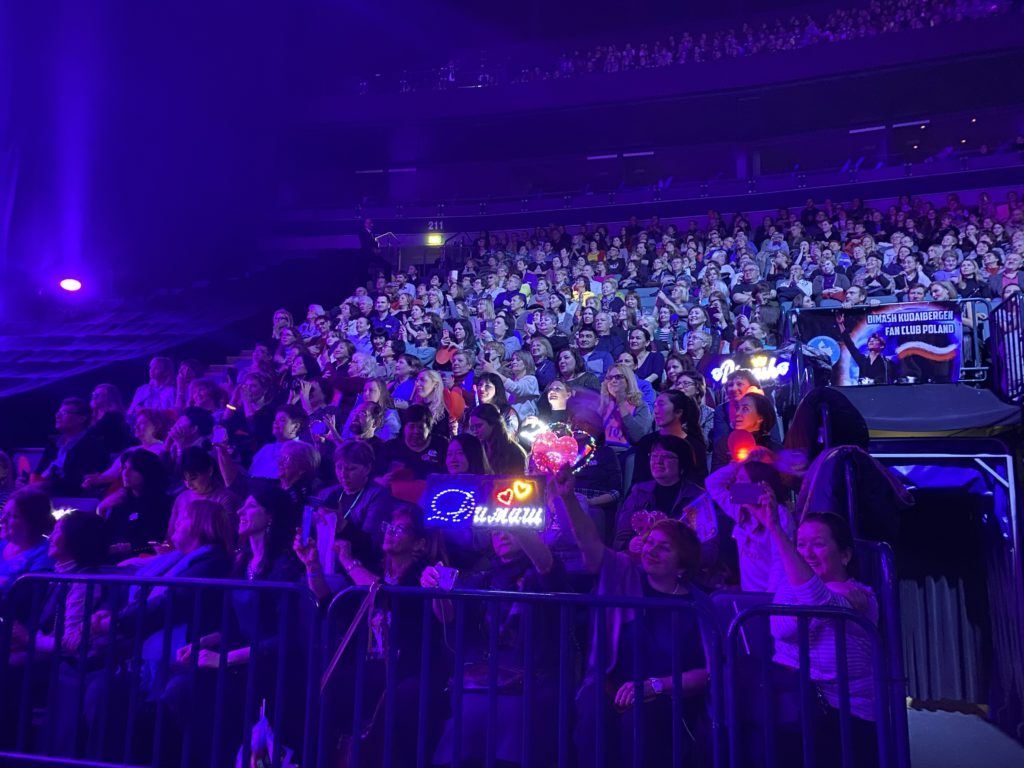 The musician’s fans held several flash mobs in support of the upcoming concert. So, a few hours before the performance, the most devoted fans of the musician gathered together to sing their favorite songs from the repertoire of Dimash, which they hoped to hear from the stage of the Ice Palace.