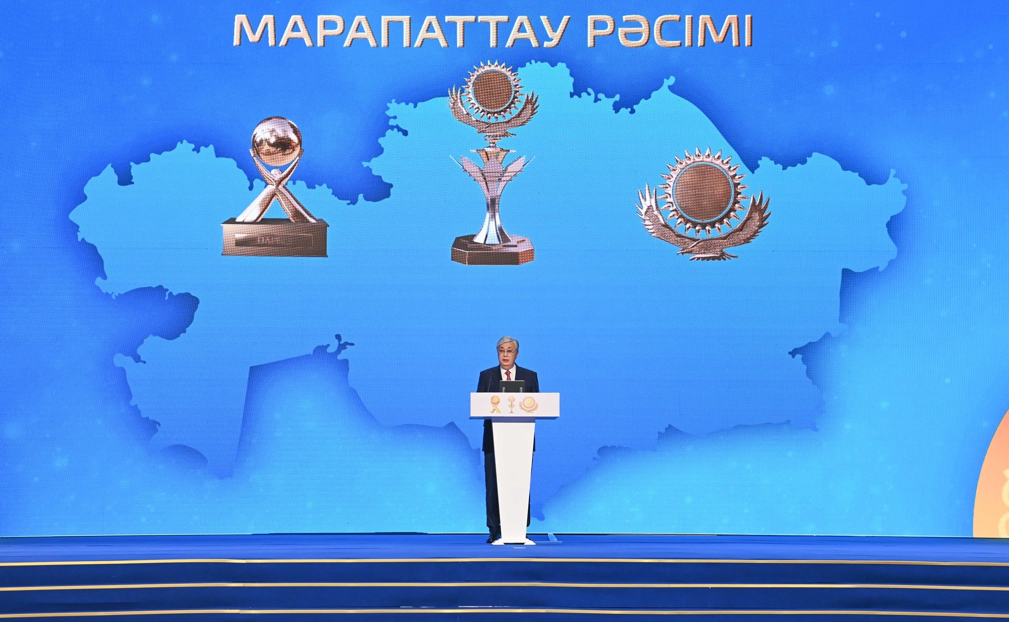 В завершение мероприятия Глава государства торжественно наградил победителей конкурсов «Алтын сапа» и «Парыз».