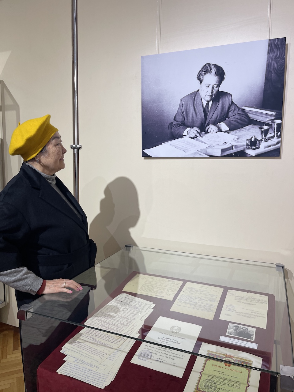 На выставке можно увидеть материалы Литературно-мемориального комплекса С. Муканова и Г. Мусрепова, которые предоставили уникальные вещи к 125-летию Сабита Муканова.