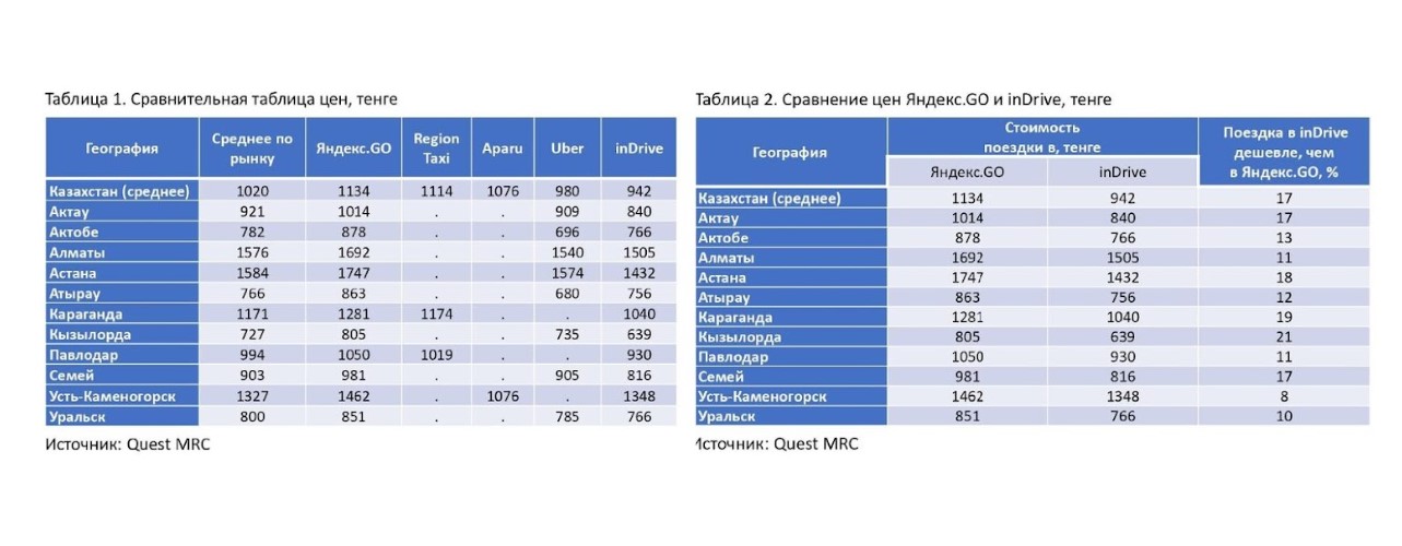 Международное агентство QuestMRC провело независимый анализ цен на такси в городах Казахстана.