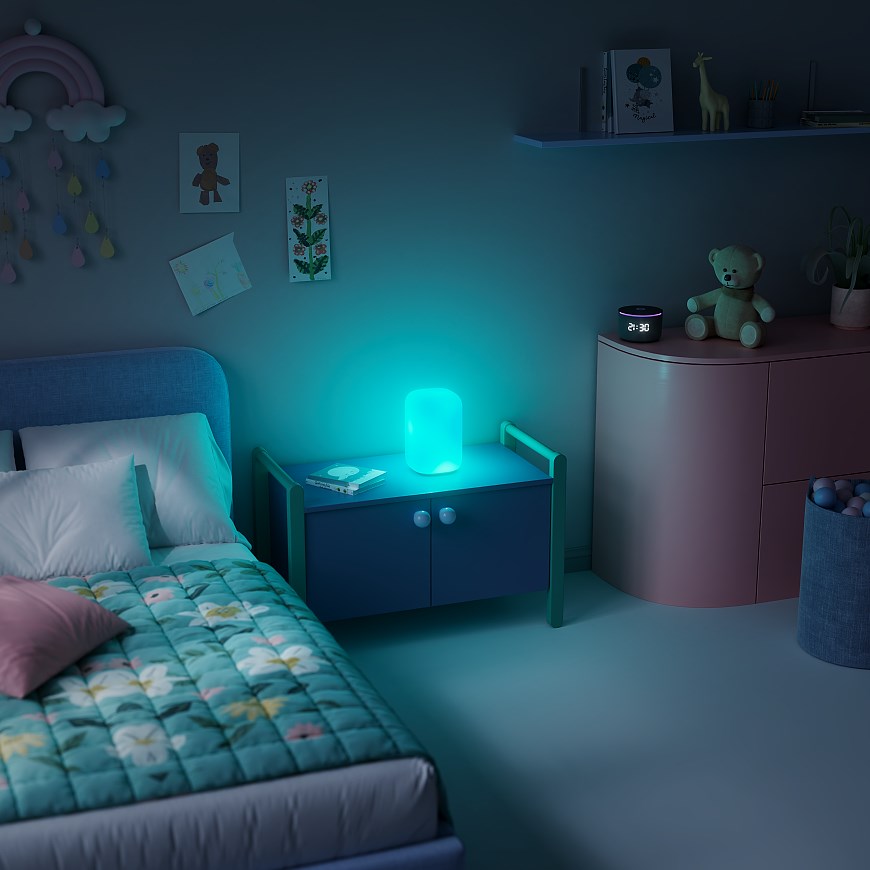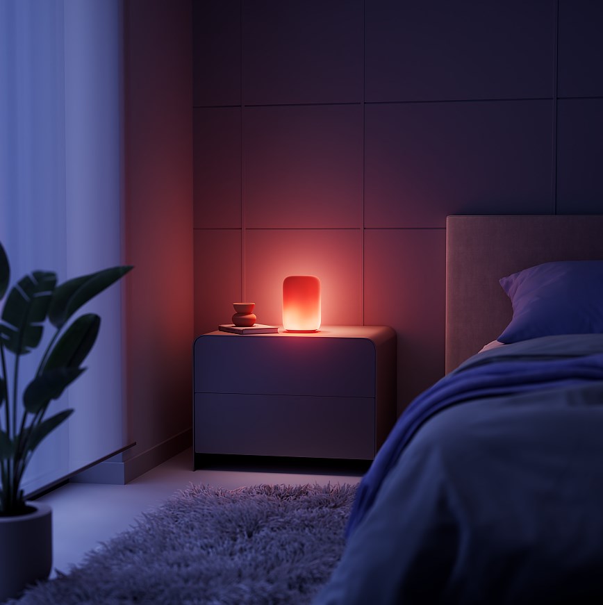 Это умный светильник, который создаёт мягкий фоновый свет, поддерживая нужное настроение дома. Внутри лампы больше сотни независимо работающих RGB-светодиодов, она может переливаться разными цветами, создавая атмосферу за счет разных режимов свечения. Например, утром лампа плавно разгорается, имитируя рассвет, а вечером включает режим «Закат» для расслабления. У лампы более 16 режимов: от «Северного сияния» до каминного свечения. Также при наличии Станции с Алисой лампа может светиться в такт музыке и сопровождать светом будильники и таймеры.