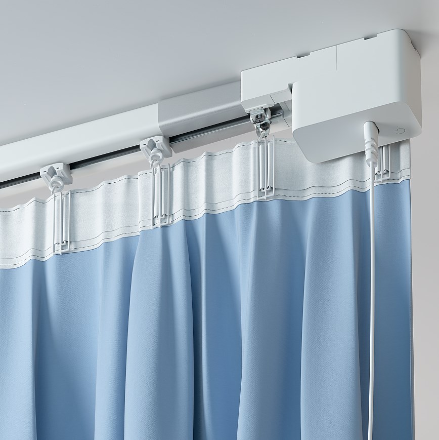 Карниз снабжен тихим компактным мотором (до 35 дБ), поддерживает протокол Zigbee и доступен в двух вариантах — длиной 1,8-3 метра и 2,5-4,5 метра. В комплекте с карнизом идёт все необходимое для его установки: мотор и набор аксессуаров для крепления.