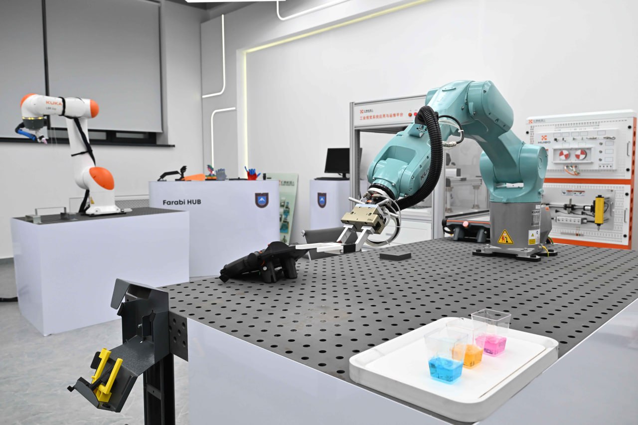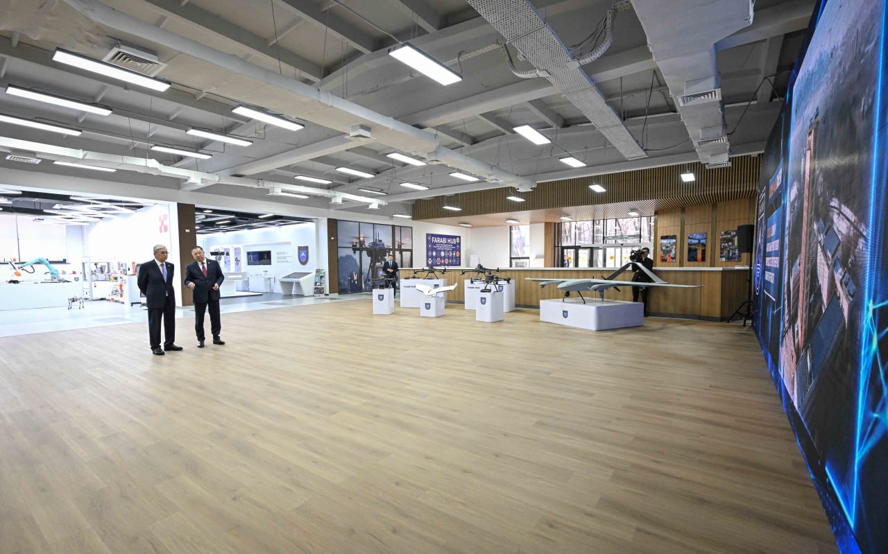 Председатель правления КазНУ, ректор Жансеит Туймебаев, представил Главе государства Центр инновационных продуктов и высокотехнологичных проектов Farabi Hub. Хаб был создан как современная платформа для внедрения инновационных разработок в реальный сектор экономики. Он активно работает в сферах креативных индустрий, искусственного интеллекта и стартапов.