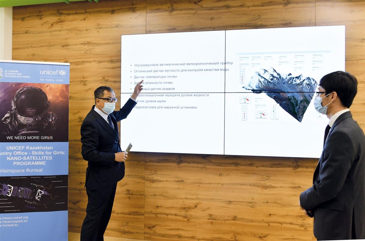 – В настоящее время Центром КТиДЗЗ планируются работы по созданию автоматизированной системы мониторинга моренных озер и созданию мобильных гибридных электростанций контейнерного типа. В Казахстане насчитывается 945 моренных озер, из них 47 опасных. В окрестностях города Алматы 36 моренных озер из них 14 представляют опасность. Вместе с тем, селевые и лавиноопасные зоны страны нуждаются в постоянном мониторинге. Использование космических технологий позволит предотвратить катастрофы, вызванные природными и антропогенными факторами, и снизить размер ущерба. А автоматизированная интеллектуальная система может измерять одновременно несколько показателей. Например, определяют качество воды, температуру и влажность почвы, количество осадков. А специалисты, сидя в ситуационных центрах, анализируют эти данные. Кроме того, установка 360-градусных камер позволит держать ситуацию под полным контролем, – отметил Омиржан Таукебаев.