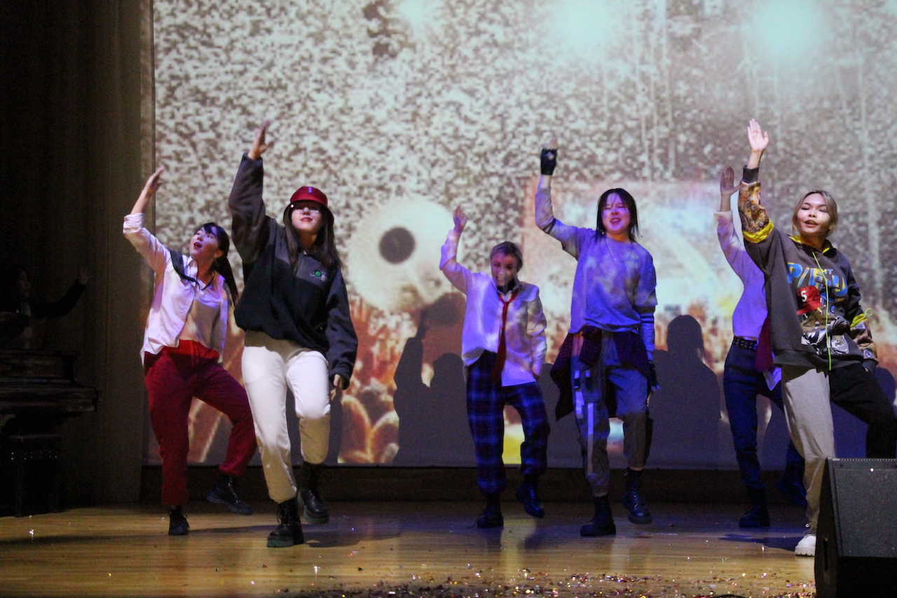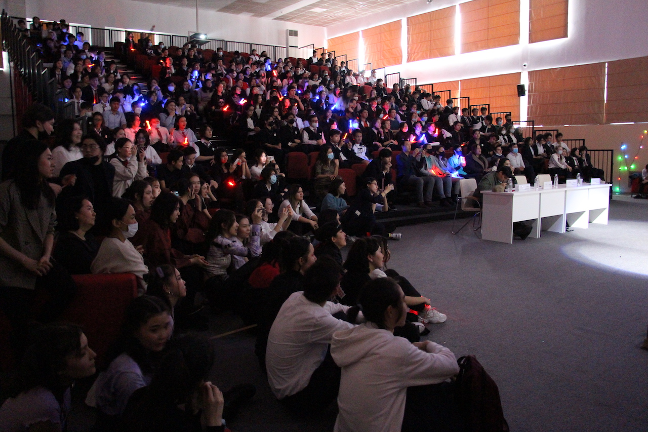 Мероприятие началось с яркого поздравительного выступления выпускников НИШ. Вслед за ними на сцене по очереди выступили 10 танцевальных кавер групп с различными номерами, подготовленными учащимися.