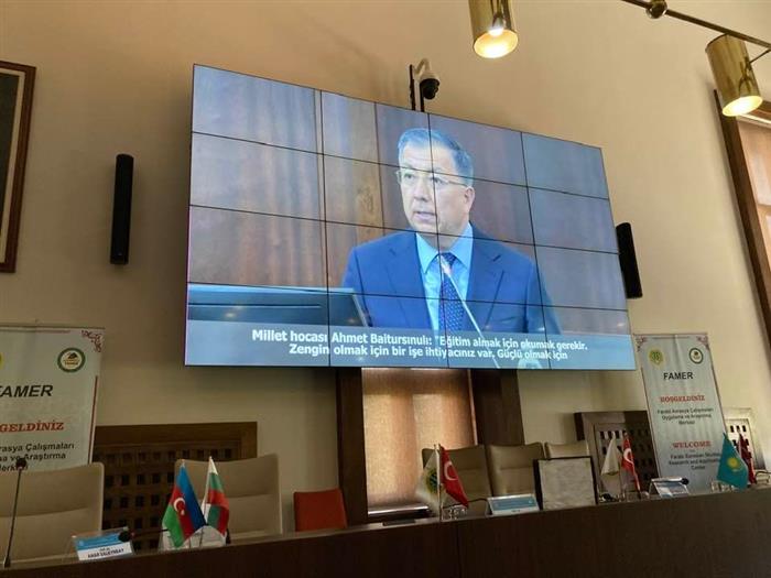 В своем выступлении профессор Махмут Ак отметил, что Стамбульский университет организует семинары и конференции на глобальном уровне. Спикер подчеркнул, что богатое наследие, оставленное Ахметом Байтурсыновым, имеет большую ценность. Махмут Ак: «А.Байтурсынулы написал много статей о методике преподавания казахского языка и известен среди тюркологов трудами, посвященными языкознанию. Он внес большой вклад в развитие казахского языка и литературы, написал большое количество статей, стихов и переводов. Также подготовил школьные книги, на страницах изданий выражал мысли и чаяния народа», – отметил он. «Особым, историческим моментом стало присвоение А. Байтурсынову звания профессора ректором Казахского государственного института образования. Сегодня в Казахстане открыт музей, посвященный Ахмету Байтурсынову, проводятся торжественные мероприятия и международные конференции. Мы очень благодарны организаторам за возможность внести свой небольшой вклад в увековечивание имени великого просветителя».