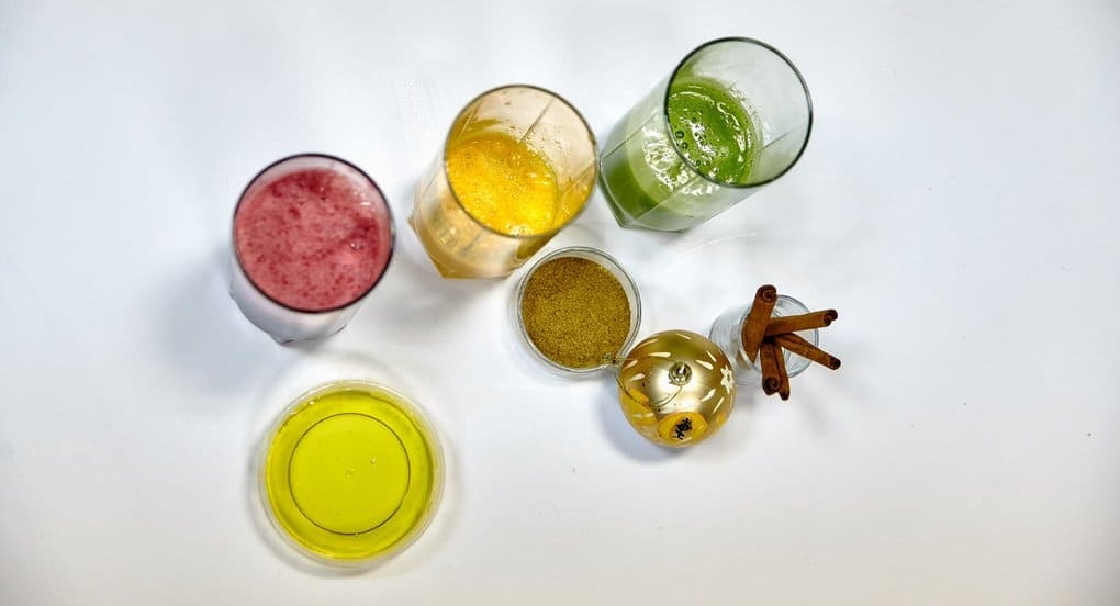 Способ приготовления очень простой. Выжимаем сок из сельдерея, граната и мандаринов в одной емкости. Добавляем мед и щепотку молотых приправ. Разливаем по бокалам и добавляем в каждый палочку корицы. В конце напиток можно украсить зонтиком для праздничной подачи.