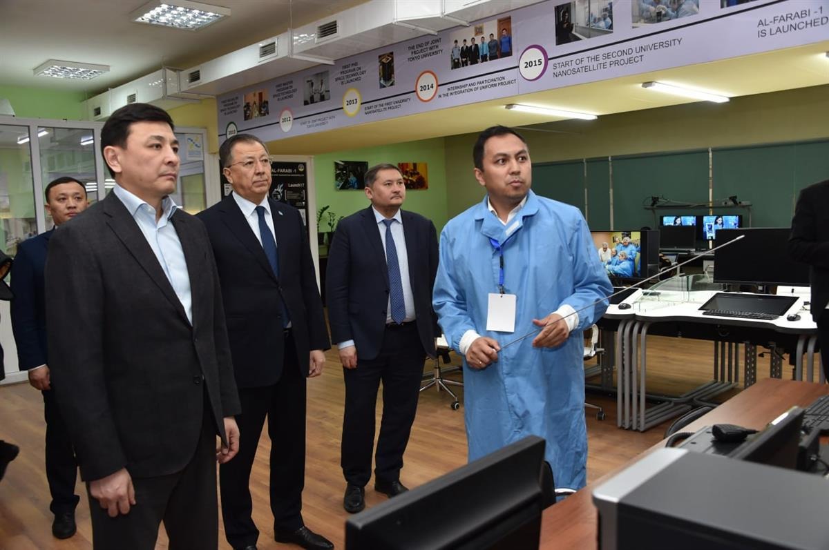 Сначала Алтаю Кульгинову были презентованы наноспутники Al-Farabi и Al-Farabi 2, созданные в стенах университета. Также был представлен конструктор ALFASAT для развития космической робототехники и системы STEM-образования в средних общеобразовательных учреждениях.