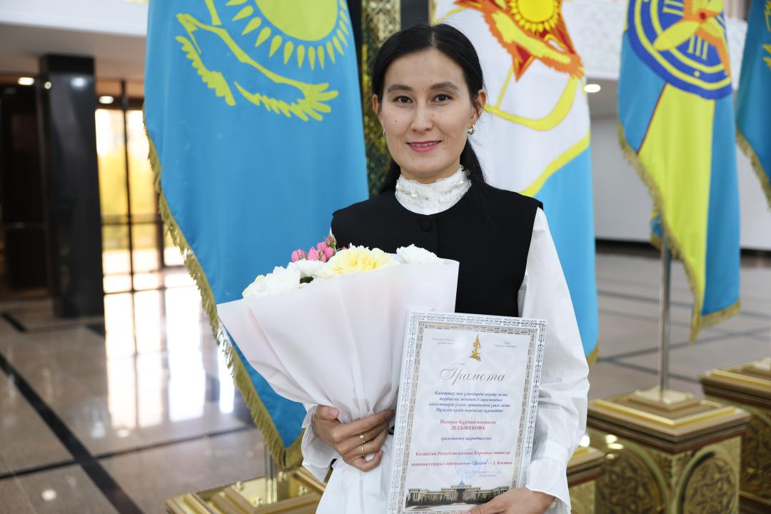 За добросовестный труд и вклад в подготовку будущих защитников Отечества министр обороны вручил ведомственную медаль «Ел қорғаны» преподавателям Военного колледжа имени Сагадата Нурмагамбетова Кунсае Нургалиевой и Военного колледжа имени Талгата Бигельдинова Елдосу Советову. Ряд отличившихся педагогов был награжден почетной грамотой.