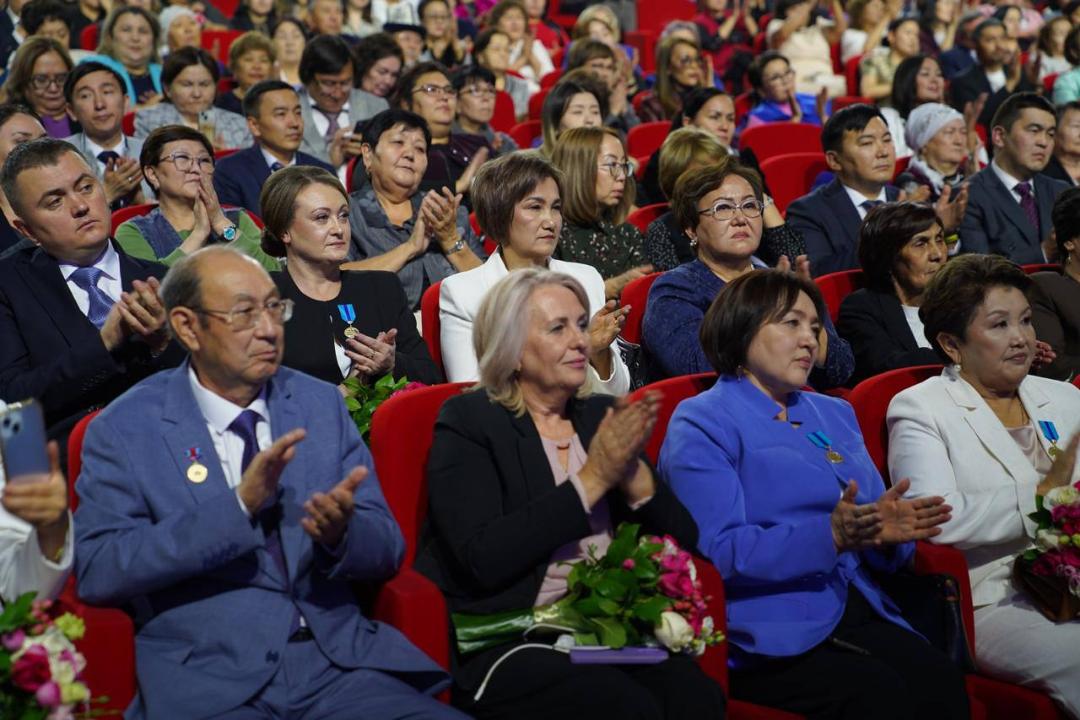 В завершение мероприятия лучшим педагогам, достигшим высоких профессиональных результатов, а также учителям, чьи ученики добились выдающихся успехов, вручены государственные награды: орден «Құрмет», медали «За трудовое отличие» и «Шапағат», а также почётное звание «Қазақстанның еңбек сіңірген ұстазы».