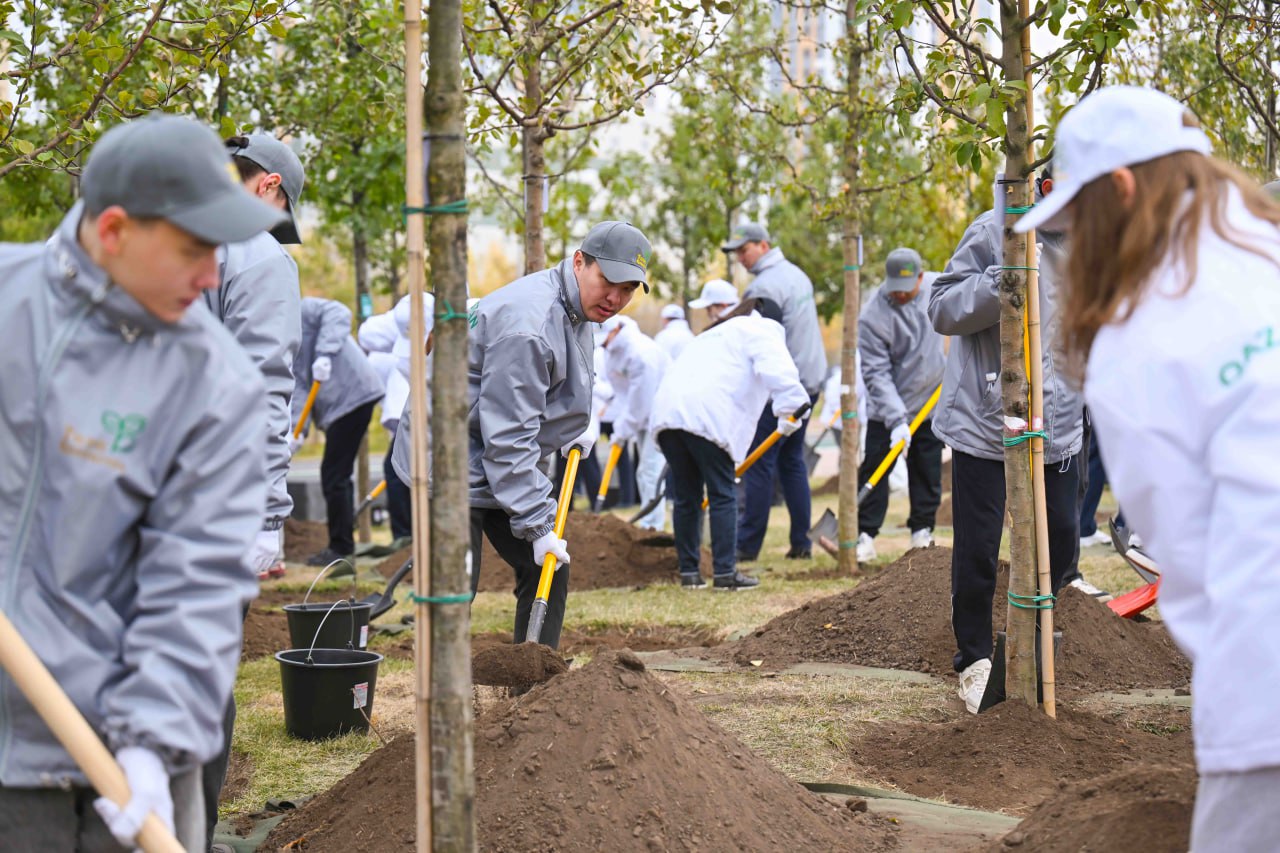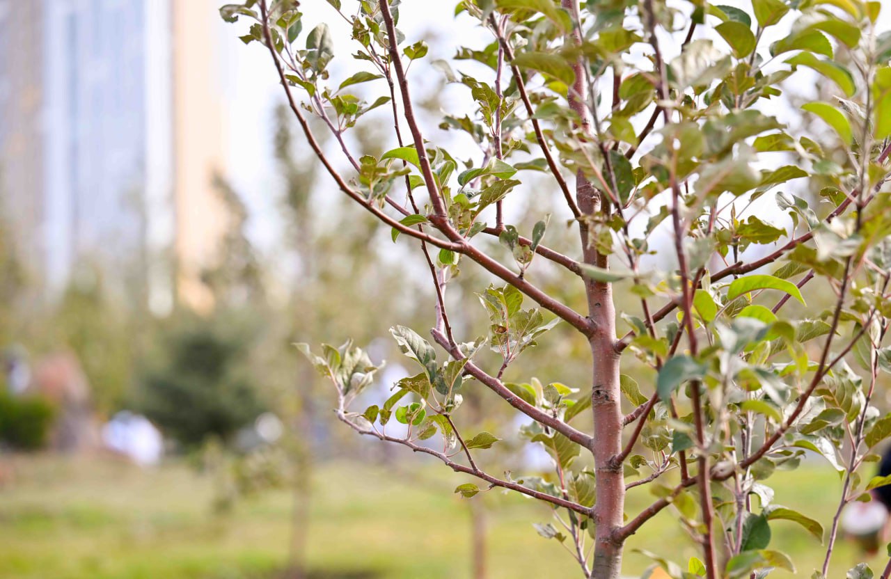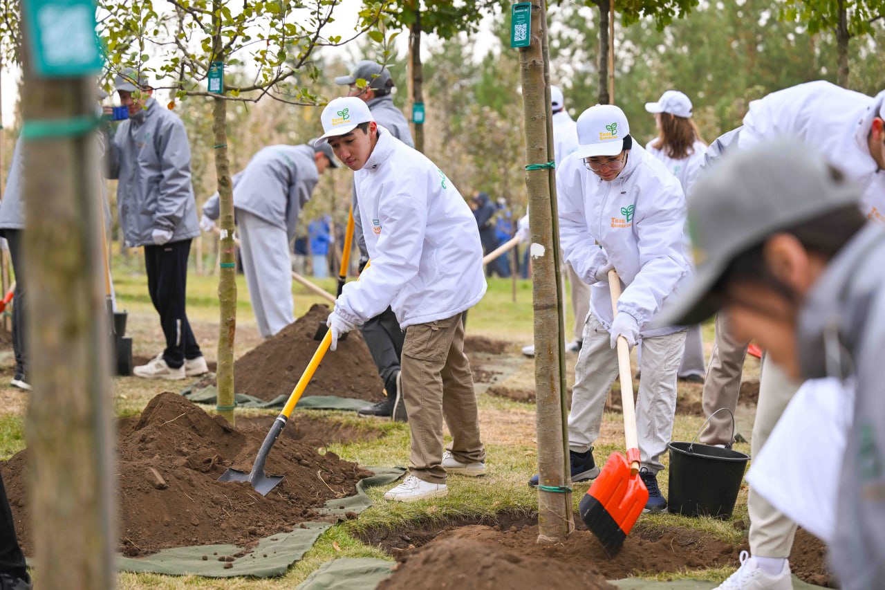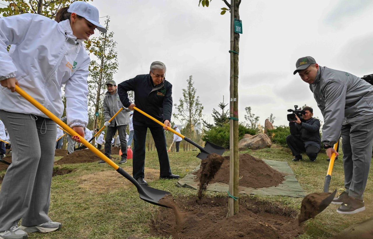 Президент совместно с волонтерами и экоактивистами принял участие в посадке деревьев на территории столичного Ботанического сада.