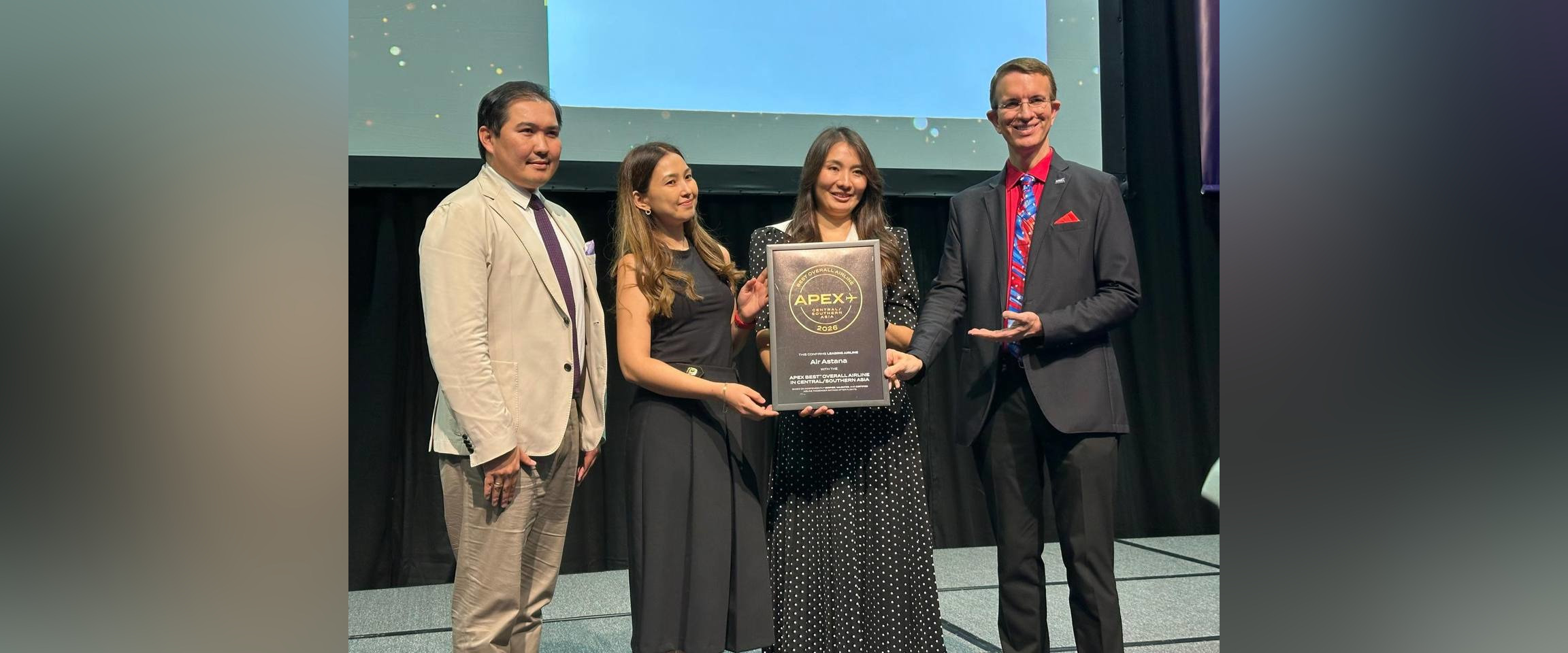 Air Astana получила престижную награду Best Overall Airline Award APEX 2026 в категории «Лучшая авиакомпания Центральной Азии» на церемонии, состоявшейся 12 ноября 2025 года в Сингапуре.