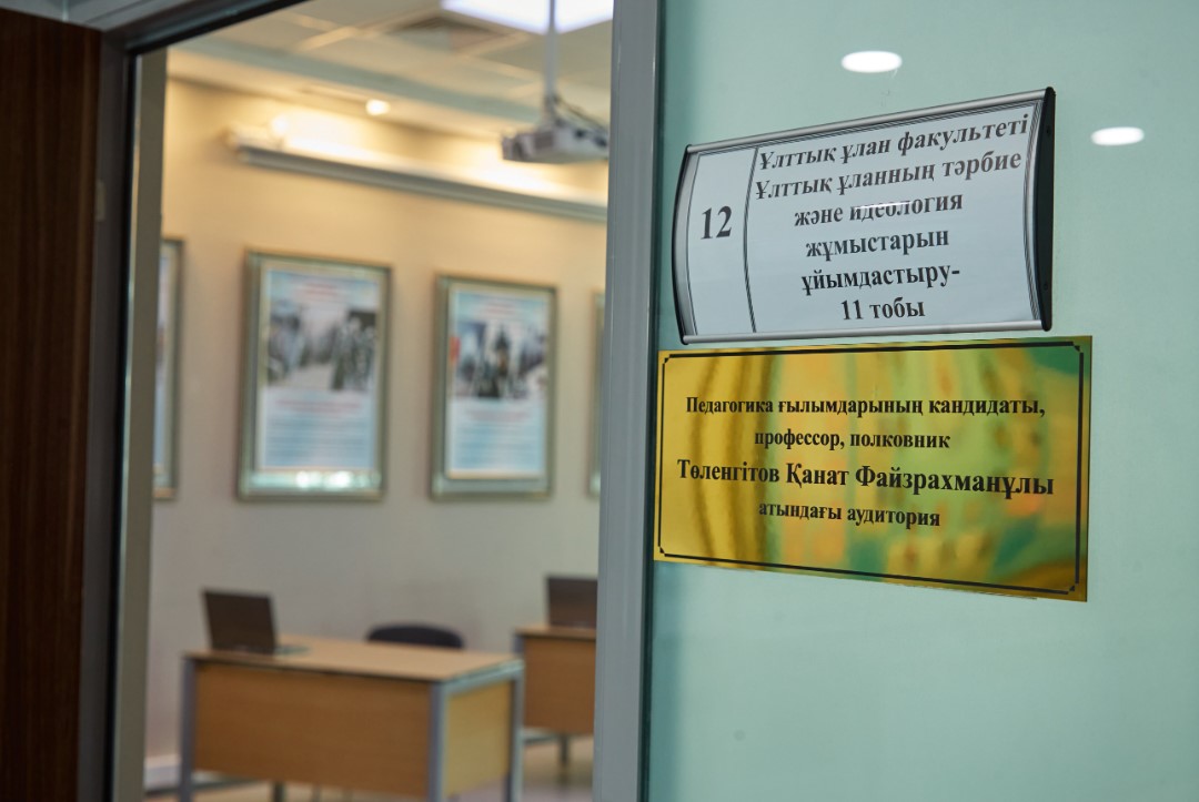 В новой аудитории размещена информационная доска с изложением научных трудов, достижений в военной науке и этапами жизненного пути полковника Каната Толенгутова. Аудитория станет важным элементом подготовки будущих офицеров, проведения научно-исследовательской работы и укрепления военно-патриотического воспитания.