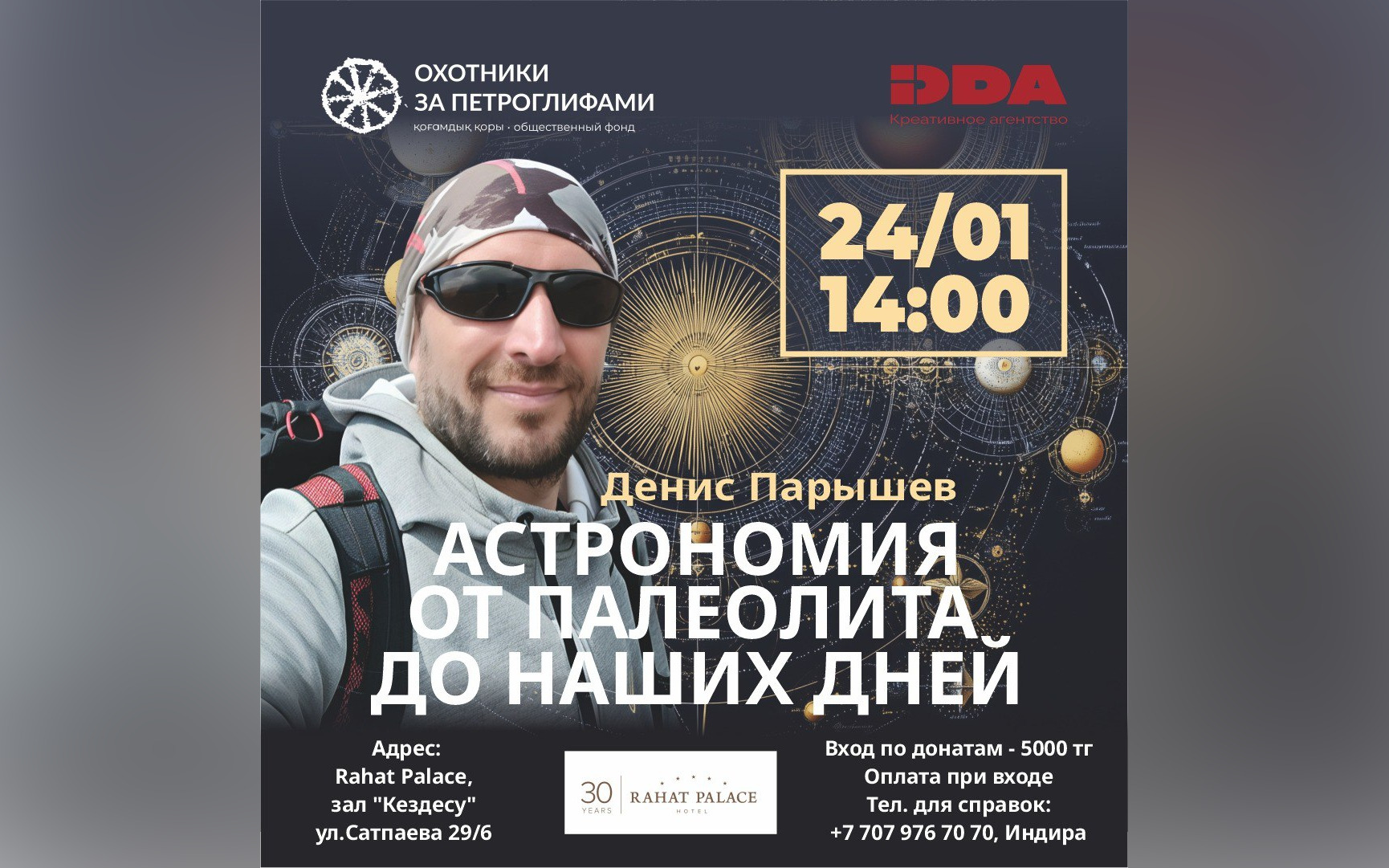 В Алматы готовится необычная научно-популярная лекция, которая объединит астрономию, историю, археологию и культуру кочевников. 24 января 2026 года лекторий «Я только уточнить» приглашает горожан на встречу с известным казахстанским астрофотографом и популяризатором науки Денисом Парышевым, передает DKNews.kz.