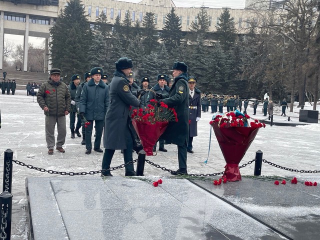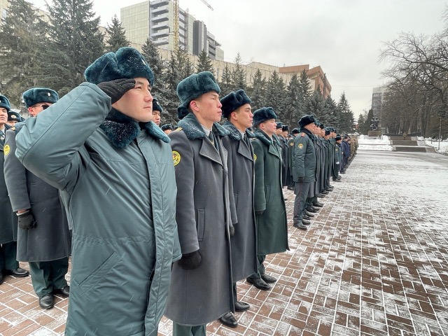 В памятном мероприятии приняли участие военнослужащие Алматинского гарнизона, ветераны Вооружённых сил и курсанты военных учебных заведений.