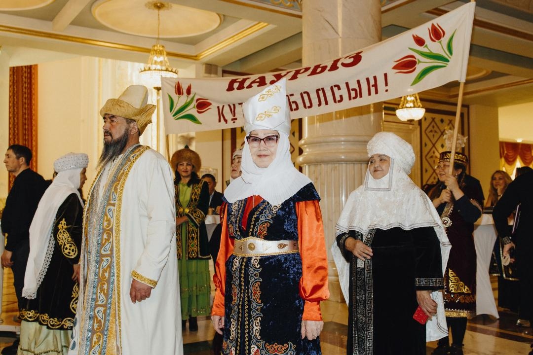 Гостей встречали артисты оперной труппы, хора и миманса в национальных костюмах, а также персонаж Қыдыр ата. В пространстве театра звучали традиционные музыкальные инструменты: жетиген, домбра, кобыз, дауылпаз.
