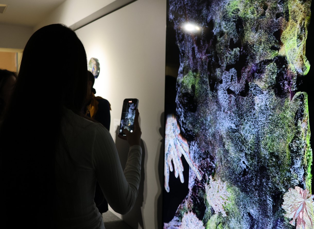 Выставка продлится до 24 мая и уже в день открытия собрала полный зал: зрители пришли не просто посмотреть, а буквально «погрузиться» в цифровую среду, где человек, природа и технологии переплетаются в единое целое.