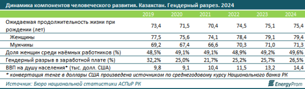 Стоить отметить: данные по Казахстану, опубликованные ПРООН, несколько отличаются от информации, которую даёт Бюро национальной статистики (БНС) АСПиР РК — как в лучшую, так и в худшую сторону. К примеру, ожидаемая продолжительность жизни в РК, по данным международного источника, в 2023-м составляла 74,4 года, а по отчётам БНС — 75,1 года. По итогам прошлого года этот показатель снова увеличился, достигнув 75,4 года. Гендерный разрыв в зарплате между мужчинами и женщинами, по подсчётам экспертов ПРООН, составлял лишь 14,7%, а по данным БНС — 25,7%. Не исключено, что причиной разночтений являются методологические особенности сбора информации.