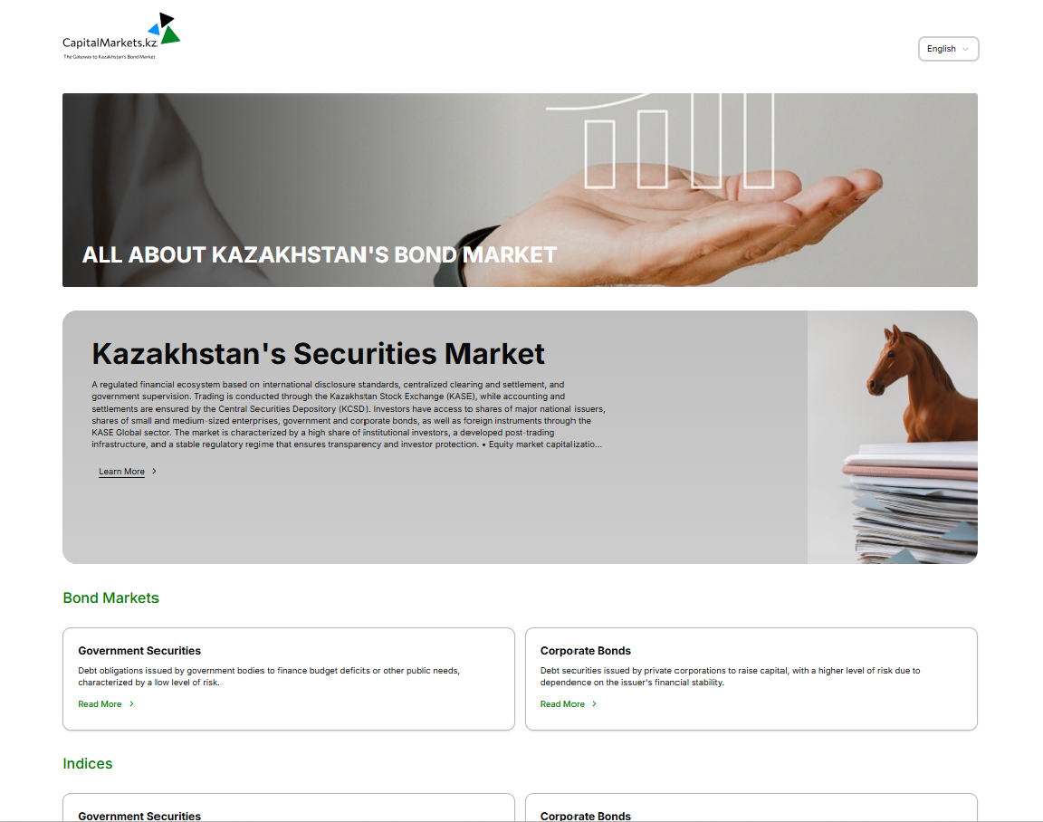 Центральный депозитарий ценных бумаг (KCSD) и Казахстанская фондовая биржа (KASE) создали единый информационный ресурс, где собрана вся ключевая информация о казахстанском рынке облигаций - от структуры и инструментов до регуляторов и аналитики.