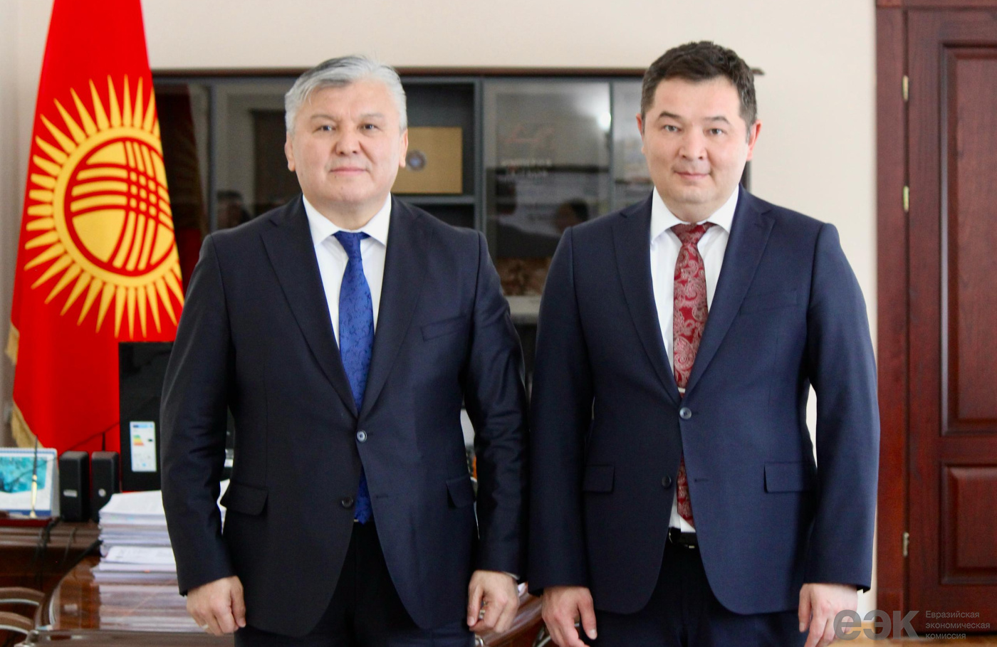 Министр по энергетике и инфраструктуре Евразийской экономической комиссии Арзыбек Кожошев провел рабочую встречу с министром экономики и коммерции Кыргызской Республики Бакытом Сыдыковым, передает DKNews.kz.