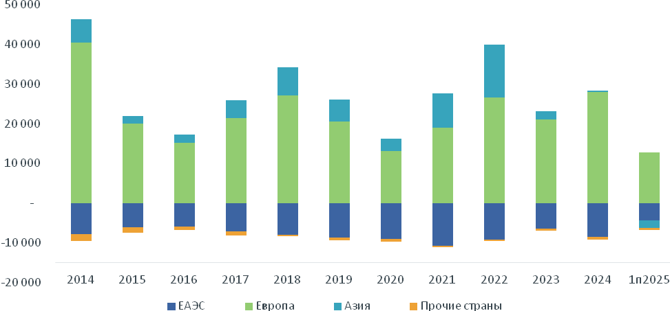 С Россией и странами Евразийского экономического союза Казахстан в основном ведет импортную торговлю. Это формирует отрицательное сальдо торговли.