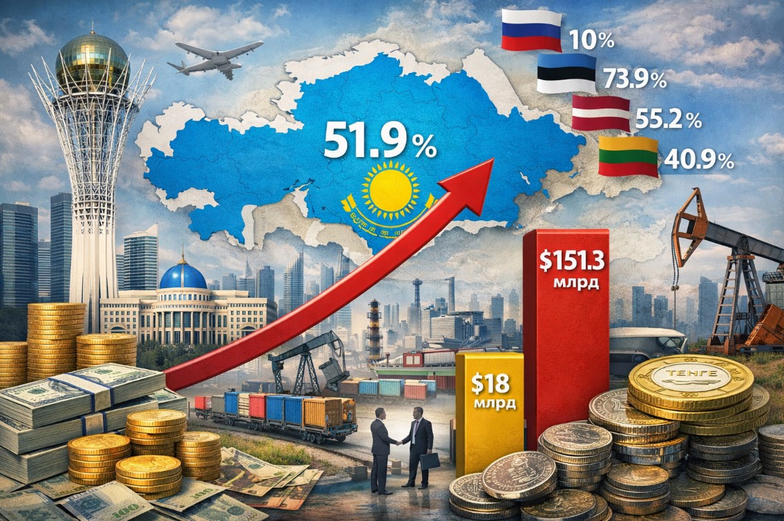 Это означает, что иностранный капитал составляет 51,9% от ВВП Казахстана.
