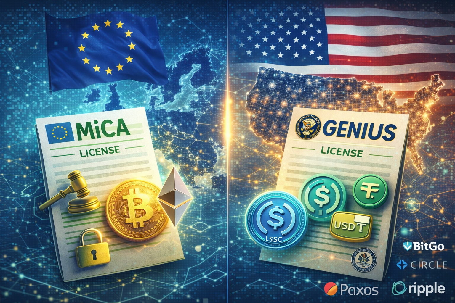 Институциональный приход банков в крипторынок опирается на новую нормативную базу. В Евросоюзе вступил в силу регламент MiCA — первый в мире комплексный закон о криптоактивах. К 1 июля 2026 года все криптосервис-провайдеры в ЕС должны получить лицензию. Авторизация в одной стране ЕС открывает доступ ко всем 27 государствам блока. В США в июле 2025 года подписан Закон GENIUS — первая федеральная нормативная база для стейблкоинов, устанавливающая требования к резервам и аудиту. Управление контролёра денежного обращения (OCC) выдало условные банковские лицензии ключевым криптокомпаниям — BitGo, Circle, Paxos, Ripple и Fidelity Digital Assets.