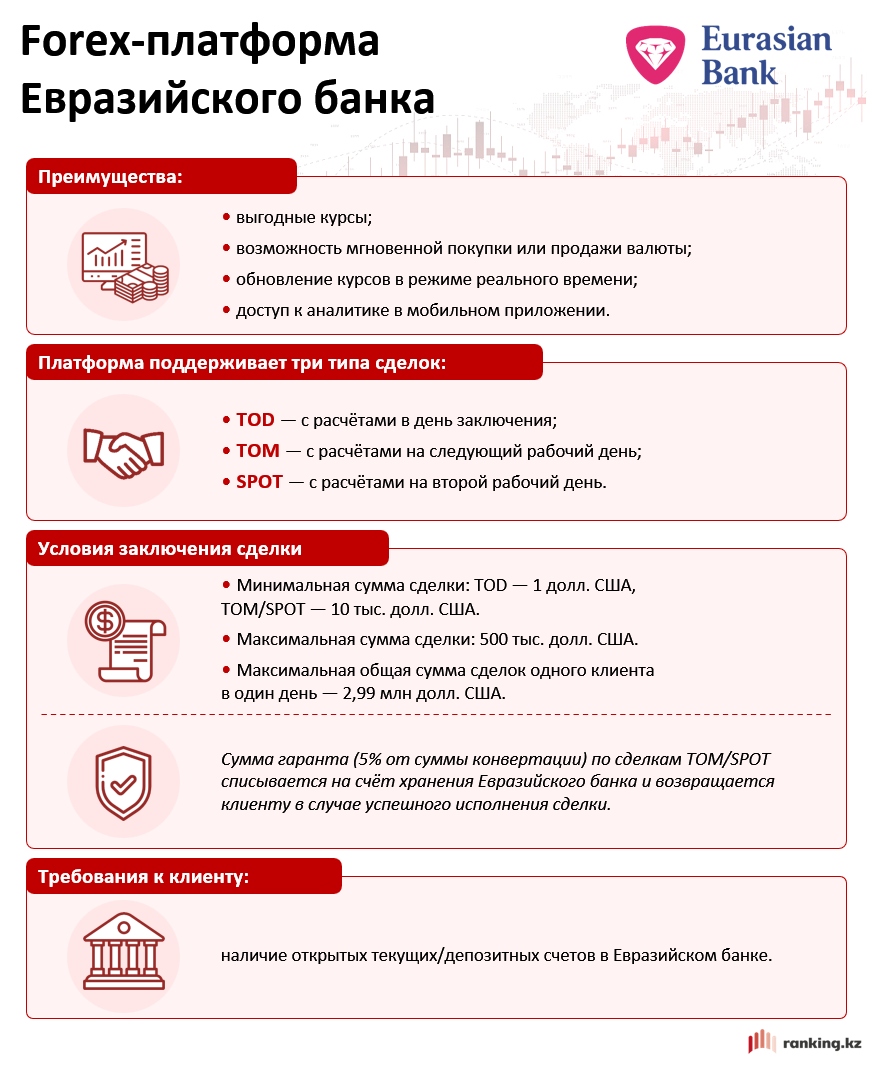 В таких условиях валютный рынок становится средой как риска, так и возможностей, а результат валютных операций во многом определяется не только динамикой курса, но и выбранными финансовыми инструментами. Резкие краткосрочные колебания подчёркивают, что ключевое значение приобретает доступ к гибким, функциональным и технологичным решениям для работы с валютой. Один из наиболее удобных и эффективных инструментов на рынке Казахстана — Forex-платформа Евразийского банка, доступная в приложении Eurasian Bank. Эта онлайн-платформа позволяет физическим лицам покупать и продавать валюту по курсам биржи, меняющимся в режиме реального времени.