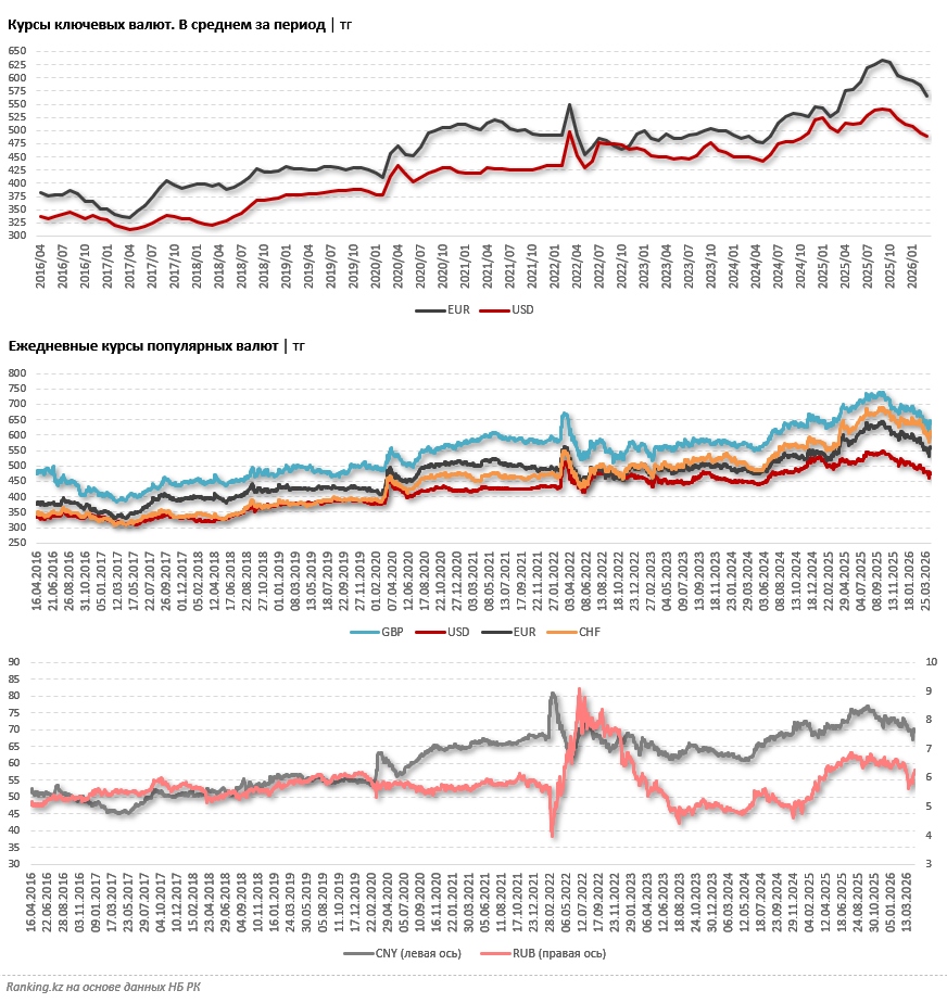 Самый высокий курс доллара в 2026-м был зафиксирован 7 и 8 января (512,83 тг), самый низкий — 8 апреля (всего 460,37 тг — сразу на 10,2% меньше, чем на пике). И это лишь в текущем году. В целом же за всё время курс доллара достигал максимума 2 октября 2025 года: 549,15 тг. Это на 7,1% больше, чем в максимальной точке текущего года, и на 19,3% больше, чем в минимальной.